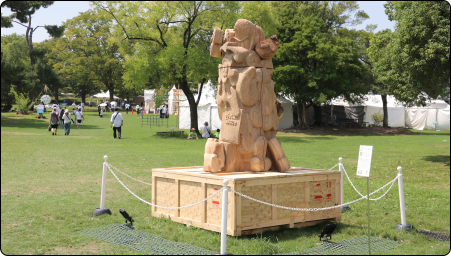 「SUMMER SONIC 2025」MOUNTAIN STAGEがあり、多くの人でにぎわうもみじ川芝生広場の周辺には、2つの作品が展示されていました。