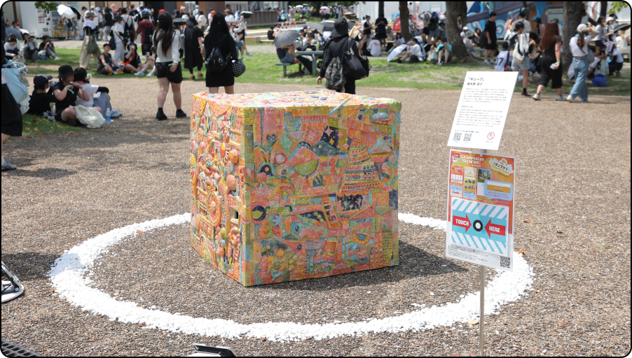 屋外展示は同日に開催された日本最大級の都市型音楽フェス「SUMMER SONIC 2025」と連携して行われ、会場内には大阪にゆかりのあるアーティストの大型アート作品4作品と文化庁のプロジェクト作品が展示されました。