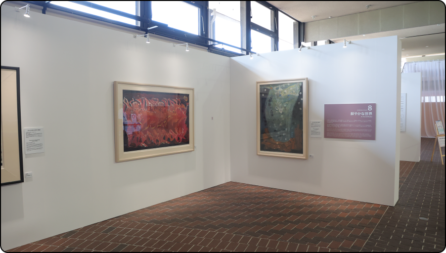 「展示室8」1990年代から2000年代にかけて、大阪で開催された世界的アートイベント「大阪トリエンナーレ」に参加したアーティストの作品を紹介。「大阪トリエンナーレ1997」にて銀賞を受賞した小林敬生の作品や、1994年・95年に開催された「現代版画コンクール」で優秀賞を受賞した木版画家・式場庶謳子の作品を展示し、その力強い絵の迫力に、多くの人が足を止めていました。