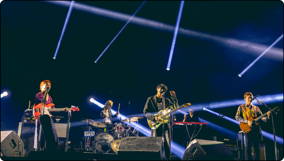 写真:渡邉 一生いきなりのスタートに客席は総立ちに。「ロックンロール!!」の一声で会場からは手拍子が上がり、一気に盛り上がります。強烈なステージライトに照らされた4ピースバンドgo!go!vanillasが、楽曲『来来来』『平安』『one shot kill』を爽快なビートで疾走。観客を徹底的に熱くします。