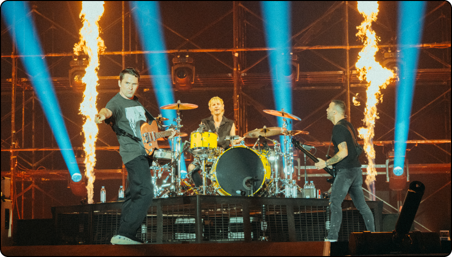 go!go!vanillas、MAN WITH A MISSIONが、MUSEへのリスペクトを込めたステージで場を盛り上げた後、いよいよ、イギリスを代表する3ピースロックバンドMUSEがステージに!
