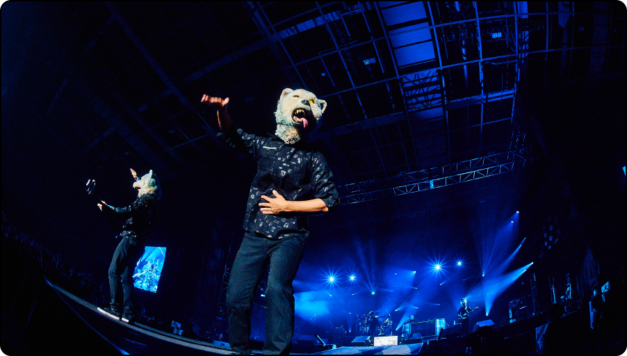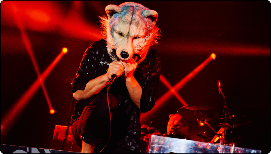 写真:酒井ダイスケ今か今かと、スタートが待ち遠しい観客から手拍子が上がります。頭はオオカミ、身体は人間という究極の生命体5匹からなるロックバンドMAN WITH A MISSIONが登場! 会場からはさらに大きな手拍子が!